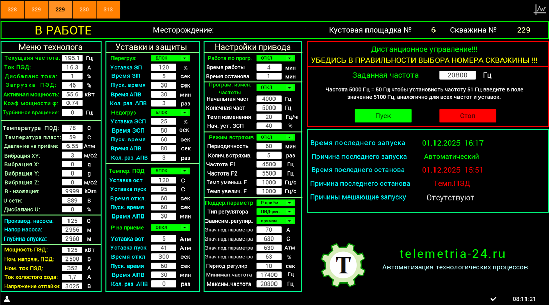 - Передавать параметры ЭПУ в реальном времени.
